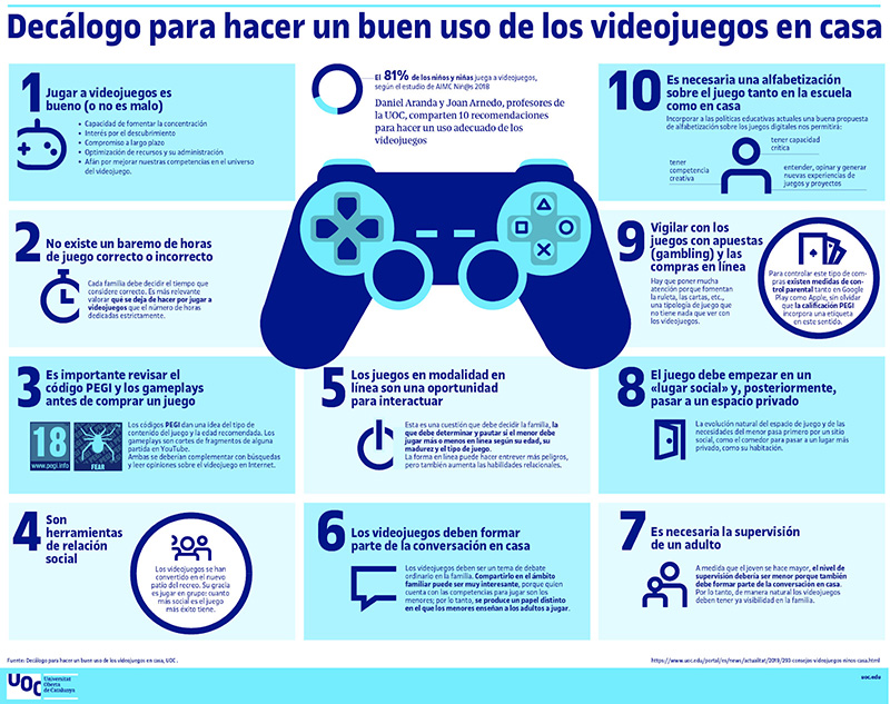 Para que todos disfruten de la experiencia, es importante buscar intereses en común que permitan a padres e hijos (o incluso abuelos, si están en casa) conectar y comunicarse mientras pasan un buen rato. Como recuerda el profesor de la UOC, precisamente jugar es una actividad transversal, que trasciende edades y géneros, por lo que suele resultar sencillo encontrar un punto en común entre padres e hijos. “Suelen tener éxito juegos que sean accesibles para cualquier tipo de jugador, que se entiendan fácilmente y que permitan ponerse a jugar sin demasiadas explicaciones”, dice, y añade que los videojuegos relacionados con el deporte y los basados en el estilo del juego de mesa llevado al medio digital son opciones interesantes, aunque los de mayor éxito habitualmente son los juegos musicales que incluyen actividades como cantar o bailar.