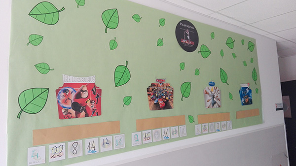 Cada grupo está identificado con su película favorita, todas las clases tienen su rincón de logros.