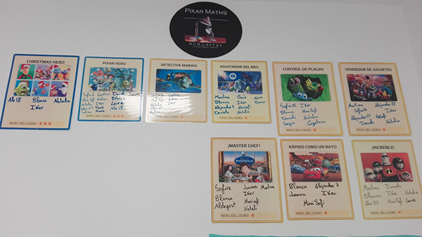 “Este proyecto no se queda tan solo en la plataforma, por supuesto. Durante el presente curso hemos acompañado esta iniciativa con una ambientación de aulas y pasillos acorde a esta temática. Cada grupo está identificado con su película favorita, todas las clases tienen su rincón de logros Pixar Maths, en los pasillos tenemos un registro del número de alumnos que completan los mundos, incluimos en las actividades de clase y en los exámenes distintas referencias a las películas de Pixar y también tenemos un mural de Momentos Esenciales en el que recogemos las fotos de todos los alumnos que consiguen los logros del proyecto”, explica Carlos Díaz Negrin.