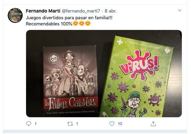 Hoy recomienda un juego de mesa que le encanta :“Virus”. “Es un juego muy divertido, al que tienes que darle algo al coco, y con el que nos lo pasamos genial. En el aula, también me gusta proponer momentos para jugar a estos juegos de mesa, y el “Virus” es uno de los más codiciados.