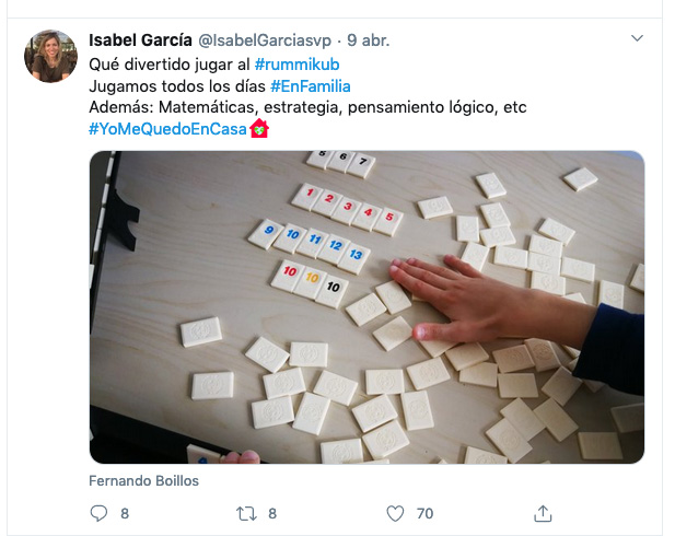 El juego que nos recomienda es “Rummikub”. “En casa jugamos con los niños muchas veces. ¡Nos encanta! además de matemáticas, es un juego de mucha estrategia y favorece el pensamiento lógico”.