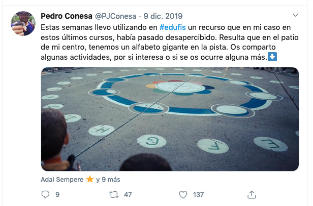 Para Conesa es muy difícil decantarse por uno. “Me ha venido a la cabeza uno que en estos tiempos actuales… puede ser muy útil para los más pequeños, ya sea a finales de Infantil o comienzos de la etapa de Primaria; el alfabeto móvil o gigante. Un juego sencillo que puede ser interactivo socialmente y que está abierto a miles de propuestas y alternativas adaptadas al alumnado sin necesidad de utilizar los medios tecnológicos.
