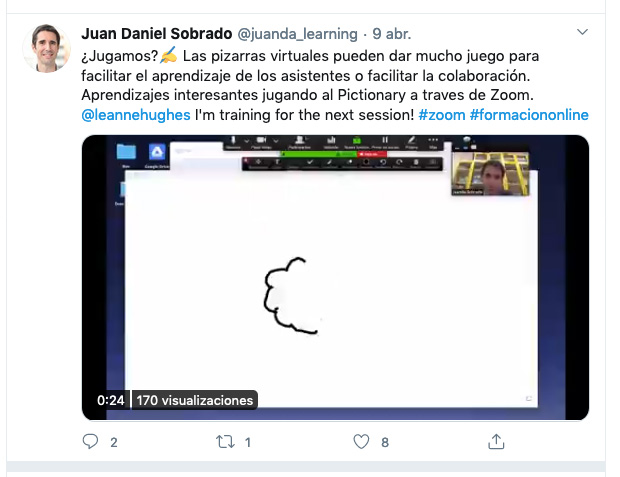 Es un gran creador de recursos y juegos y le ha costado mucho decantarse por uno, pero nos propone jugar al Pictionary de manera on line: “Me encantan los juegos relacionados con el dibujo. La semana pasada jugaba al Pictionary con facilitadores de todo el mundo usando la pizarra compartida de Zoom. Para hacerlo más participativo variamos el juego. El organizador de la reunión seleccionaba a una persona y le escribía por chat privado lo que tenía que dibujar (puedes usar un generador de palabras aleatorias). Esa persona comenzaba a dibujar (nadie sabía quién era) y todos íbamos comentando en voz alta posibles títulos (muchas risas). Después de dos minutos, todo el mundo escribía su título en mayúsculas en el chat (incluyendo el dibujante) y votábamos. Las personas que acertaban votando el título correcto ganaban un punto y también aquellas que hubieran recibido votos por sus títulos”. Este juego se podría usar con alumnos como actividad de repaso para que tuvieran que dibujar un concepto relevante, un hecho histórico, describir un proceso…
