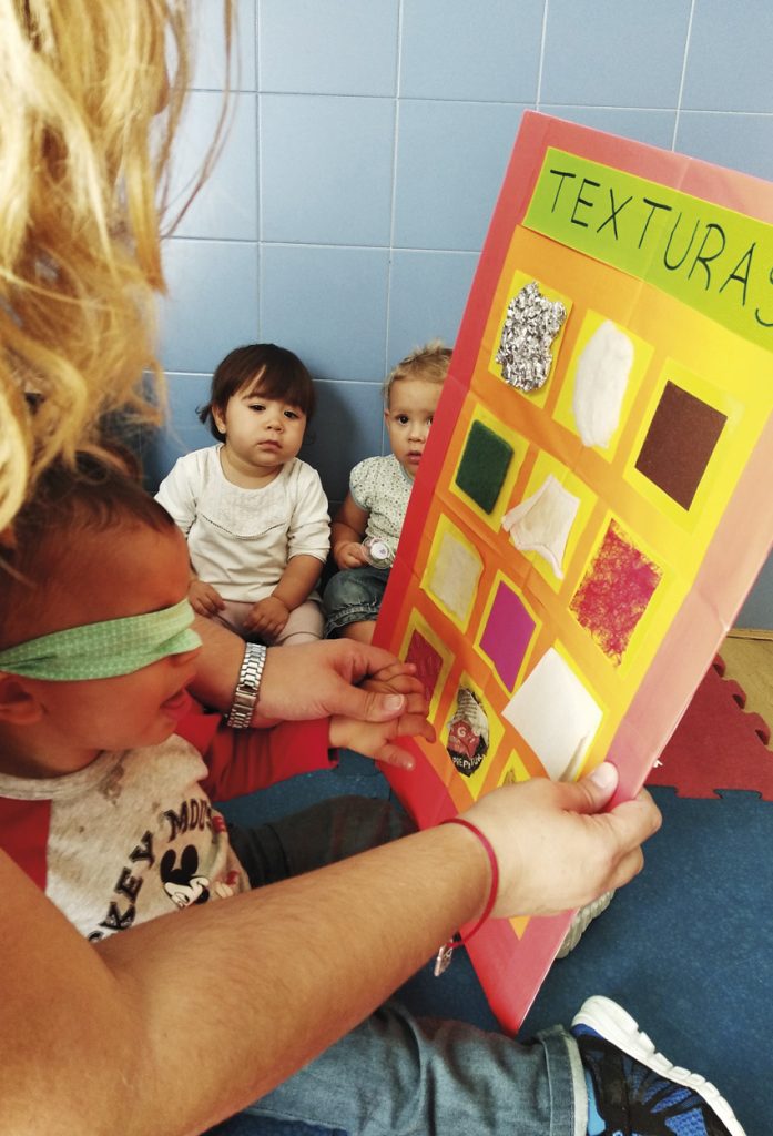 Veo con mis manos. Creamos paneles de texturas (papel de aluminio, papel de burbujas, lana…) y preparamos bandejas con diferentes sustancias (arena, arroz, harina…). Tapamos los ojos a los niños para que experimenten, por medio del tacto, e intenten adivinar de qué se trata.