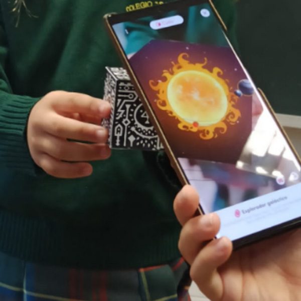 De esta forma, la unidad didáctica, realizada como un proyecto sencillo, cuenta con cuatro fases: inicial o motivacional, desarrollo o profundización, cierre o tarea final, y evaluación. “Personalmente me gusta iniciar las unidades didácticas (especialmente las relacionadas con STEM) con una actividad que desarrolle sus competencias digitales, a veces consiste en un Genially, vídeos en 360º, o actividades de realidad aumentada, como fue en este caso. Así inicialmente empezamos utilizando el cubo merge junto a la aplicación “Explorer”. Esta aplicación nos permitía ver el sistema solar en nuestras manos por medio de una tablet o móvil (puede usarse el del docente). Empezar así siempre supone un plus de motivación para todos los alumnos”, esgrime Nogales.