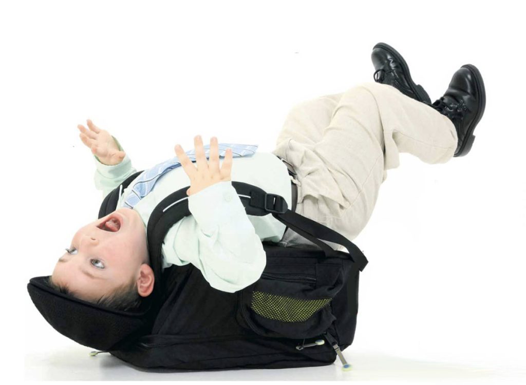Otro factor que origina dolores y problemas de espalda son las mochilas demasiado pesadas. “A pesar de las advertencias, seguimos viendo niños pequeños por la calle con mochilas enormes que llegan casi hasta el suelo”, describe Victoria. Según un estudio de la Red Española de Investigaciones en Dolencias de Espalda, la mochila no debe llevar más del 10% del peso del niño. Es decir, si pesa 40 kg, debe cargar como máximo cuatro. Para Garnacho, las mochilas más recomendables son las tradicionales, bien ajustadas a la espalda y con una distribución simétrica del peso. Las mochilas de carro están totalmente contraindicadas porque al cargar el peso sólo de un lado favorece la desviación de la columna. Sólo se recomiendan mochilas con ruedas si éstas se empujan hacia delante y con las dos manos”, explica.