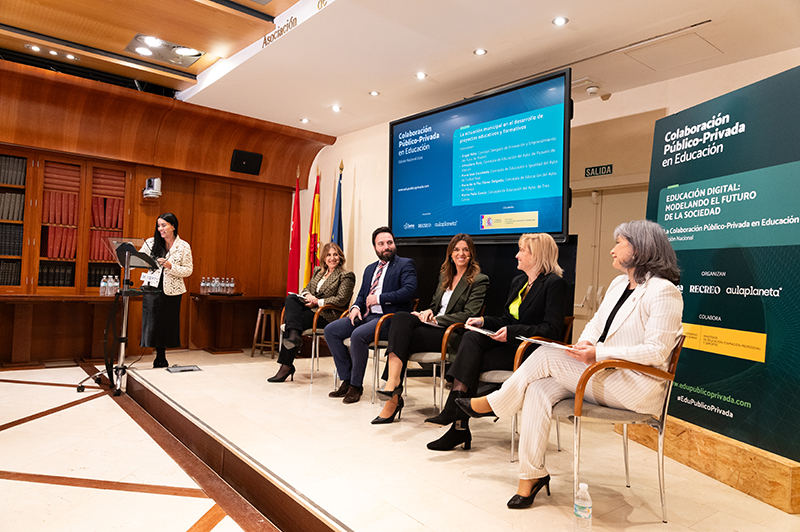 Entre los protagonistas de esta jornada, presentada por la experta en bienestar digital Laura Cuesta Cano, se encontraron los municipios. En el panel central, titulado La actuación municipal en el desarrollo de proyectos educativos y formativos, participaron Ángel Niño, concejal delegado de Innovación y Emprendimiento del Ayuntamiento de Madrid; Almudena Ruiz, concejala de Conciliación, Educación y Relaciones con las Universidades del Ayuntamiento de Pozuelo de Alarcón; Marisa Peña García, concejala de Educación del Ayuntamiento de Tres Cantos; María de la Paz Flores Delgado, concejala de Educación y Fomento del Empleo del Ayuntamiento de Málaga y María José Escobedo, concejala de Educación e Igualdad del Ayuntamiento de Ciudad Real.
