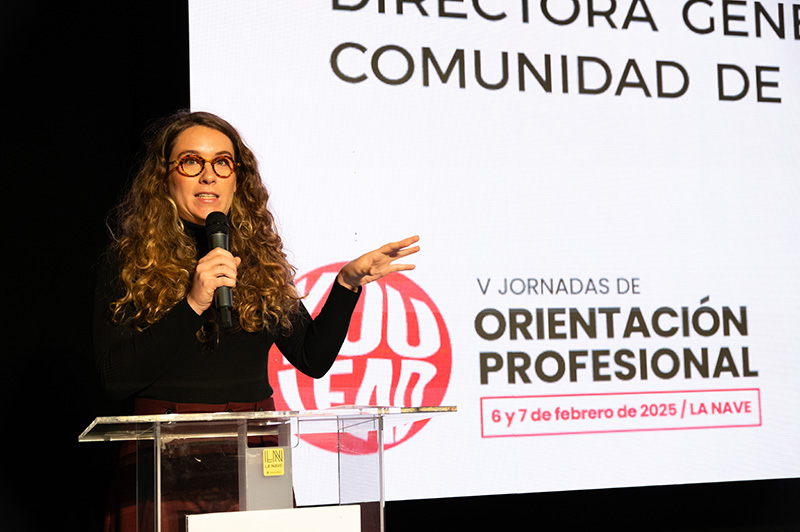 Ana Cobos fue la encargada de recibir a los alumnos en ambas jornadas, con una sesión de orientación previa a las ponencias de las personalidades de reconocido prestigio, en un auditorio repleto por el que fueron desfilando desde la veteranía del arquitecto Alberto Campo Baeza –con sus 50 años de catedrático de Arquitectura a sus espaldas– a la juventud, entre otras, de la investigadora Leyre Iturmendi, que finalizó el Grado en Farmacia en 2023. Personas con trayectorias muy dispares y de campos diversos –Psicología, Medicina, Periodismo, Derecho, Informática, Finanzas…– que ejercieron como referentes para un público ávido de conocer cómo es el día a día en sus profesiones.