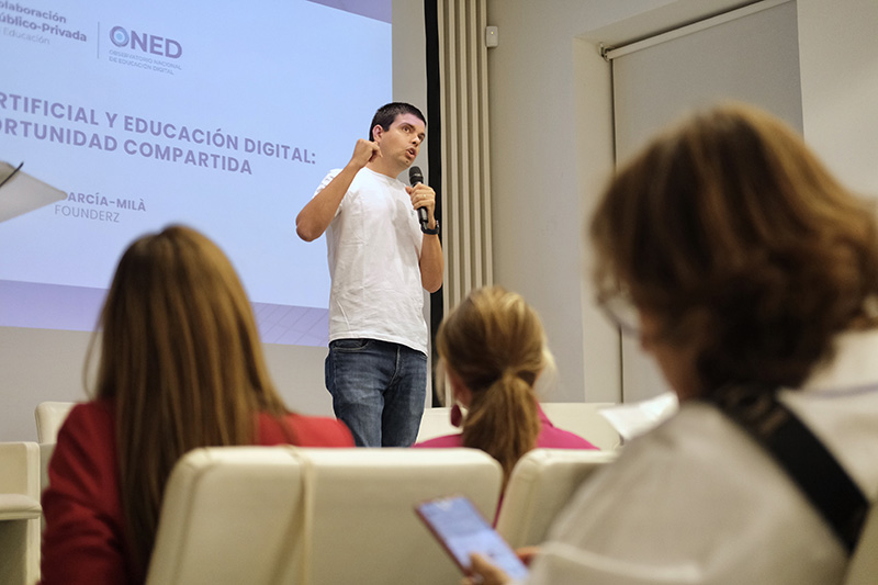 - Conferencias magistrales. Pau insistió en la necesidad de preparar a la comunidad educativa para los retos digitales, ya que “no hacerlo sería irresponsable”. Por su parte, Sara Ángel Germán recordó que “la educación es algo más que herramientas: son también experiencias, empatía, motivación y conexión, dimensiones que ninguna máquina puede reemplazar”.