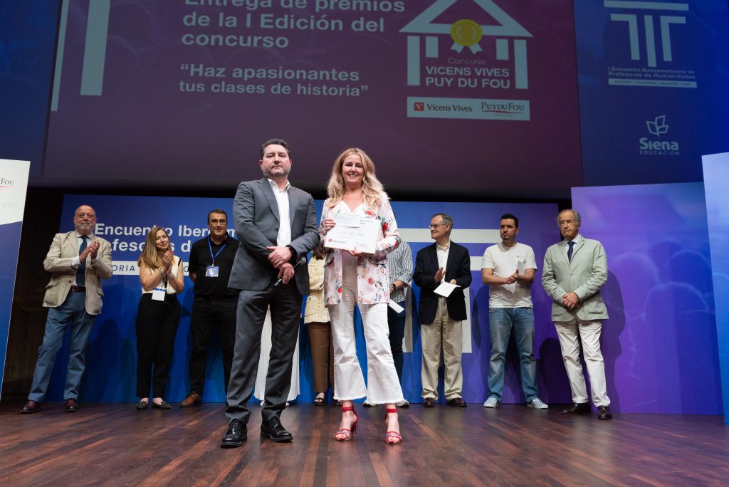 Laura Gallego, profesora del IES “Pedro Jiménez Montoya” de Baza (Granada), se alza con el primer premio del concurso Vicens Vives - Puy du Fou España 'Haz apasionantes tus clases de Historia' con el proyecto 'Face the Past, Change our Future'. Más de 200 docentes de España, Portugal e Iberoamérica han participado en este concurso, convocado por Siena Educación en el marco del I Encuentro Iberoamericano de Profesores de Humanidades.